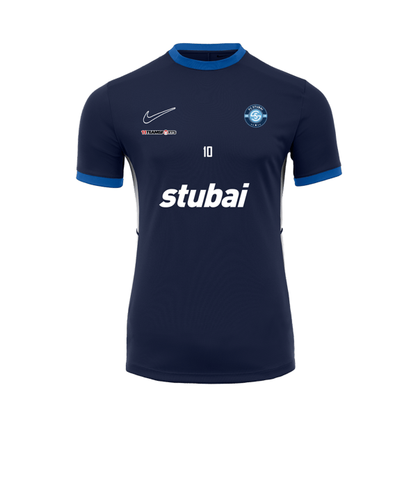 Dieses dunkelblaue Nike Academy 25 Trainingsshirt in Midnight Navy gehört zur Nike Teamwear. Das kurzärmeliges Trainingsoberteil in Herren-Größen ist für Vereine und Fußballmannschaften konzipiert - mit Fokus auf haltbare Qualität, funktionales Design und einen attraktiven Grundpreis. Du kannst diese Teamsportvorteile aber auch gerne für deine eigene Sportausrüstung nutzen. Sehen wir uns gemeinsam das praktische Stück Trainingsbekleidung aus dem Nike Teamsportkatalog im Detail an: