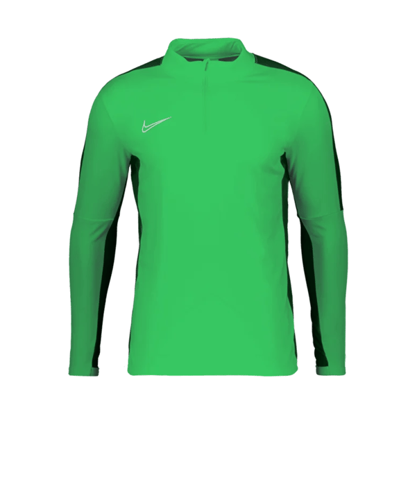 Dieses green-spark-grüne Nike Academy 23 Drill Top mit weißem Swoosh und Kontraststeifen in Lucky-Grün gehört zur Nike Teamwear. Der langärmelige Toplayer in Herren-Größen ist für Vereine und Fußballmannschaften konzipiert - mit Fokus auf haltbare Qualität, funktionales Design und einen attraktiven Grundpreis. Du kannst diese Teamsportvorteile aber auch gerne für deine eigene Sportausrüstung nutzen. Sehen wir uns gemeinsam das praktische Stück Trainingsbekleidung aus dem Nike Teamsportkatalog im Detail an: