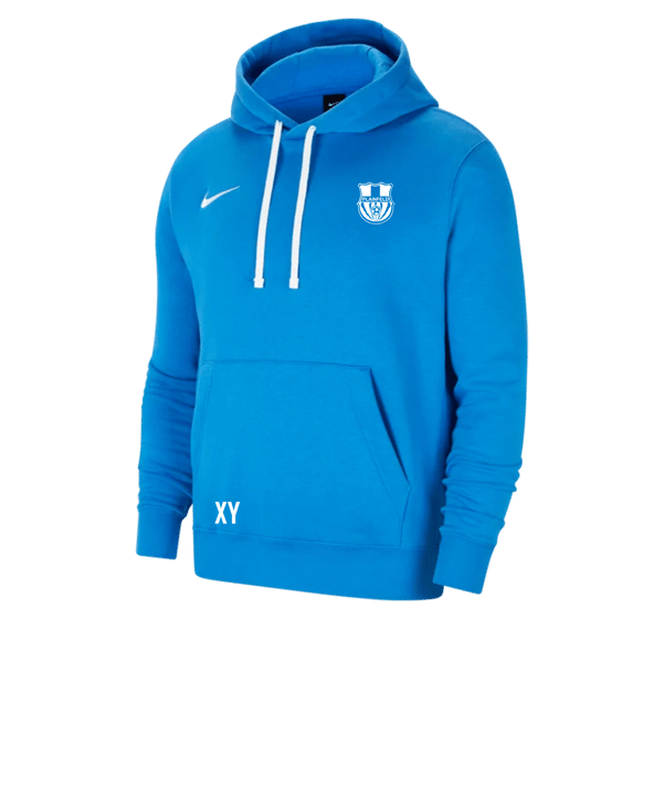 Dieser royal-blaue Nike Park 20 Fleece Hoody gehört zur Nike Teamwear. Der Kapuzenpullover in Herren-Größen ist für Vereine und Fußballmannschaften konzipiert - mit Fokus auf haltbare Qualität, funktionales Design und einen attraktiven Grundpreis. Du kannst diese Teamsportvorteile aber auch gerne für deine eigene Sportausrüstung nutzen. Sehen wir uns gemeinsam das praktische Stück Freizeitbekleidung aus dem Nike Teamsportkatalog im Detail an: