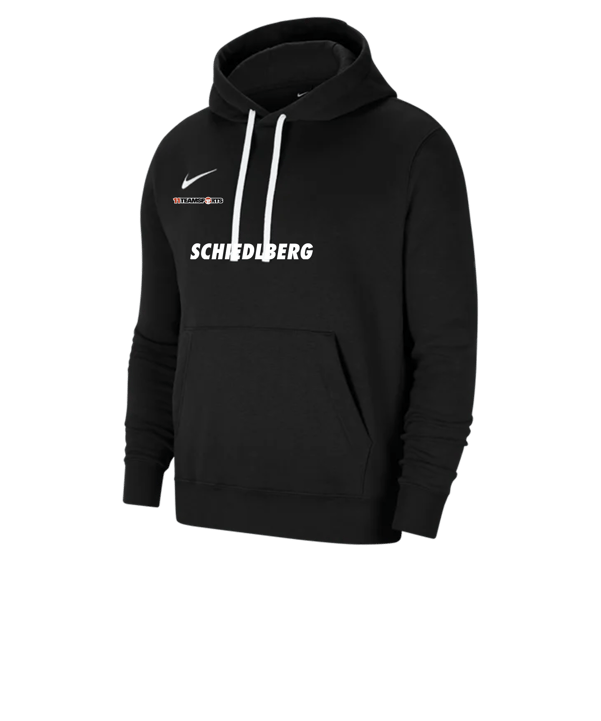 Dieser schwarze Nike Park 20 Fleece Hoody gehört zur Nike Teamwear. Der Kapuzenpullover in Herren-Größen ist für Vereine und Fußballmannschaften konzipiert - mit Fokus auf haltbare Qualität, funktionales Design und einen attraktiven Grundpreis. Du kannst diese Teamsportvorteile aber auch gerne für deine eigene Sportausrüstung nutzen. Sehen wir uns gemeinsam das praktische Stück Freizeitbekleidung aus dem Nike Teamsportkatalog im Detail an: