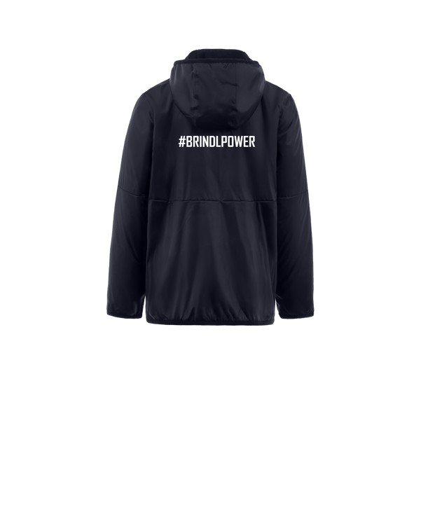- Kragen: hochschließender Stehkragen mit Kapuze