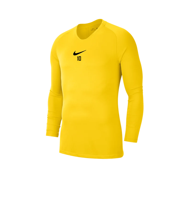 Dieser tour-gelbe Nike Park First Layer langarm mit schwarzem Swoosh gehört zur Nike Teamwear. Das langärmelige Sportunterhemd in Herren-Größen ist für Vereine und Fußballmannschaften konzipiert - mit Fokus auf haltbare Qualität, funktionales Design und einen attraktiven Grundpreis. Du kannst diese Teamsportvorteile aber auch gerne für deine eigene Sportausrüstung nutzen. Schauen wir uns das praktische Stück persönliche Sportausrüstung aus dem Nike Teamsportkatalog gemeinsam an: