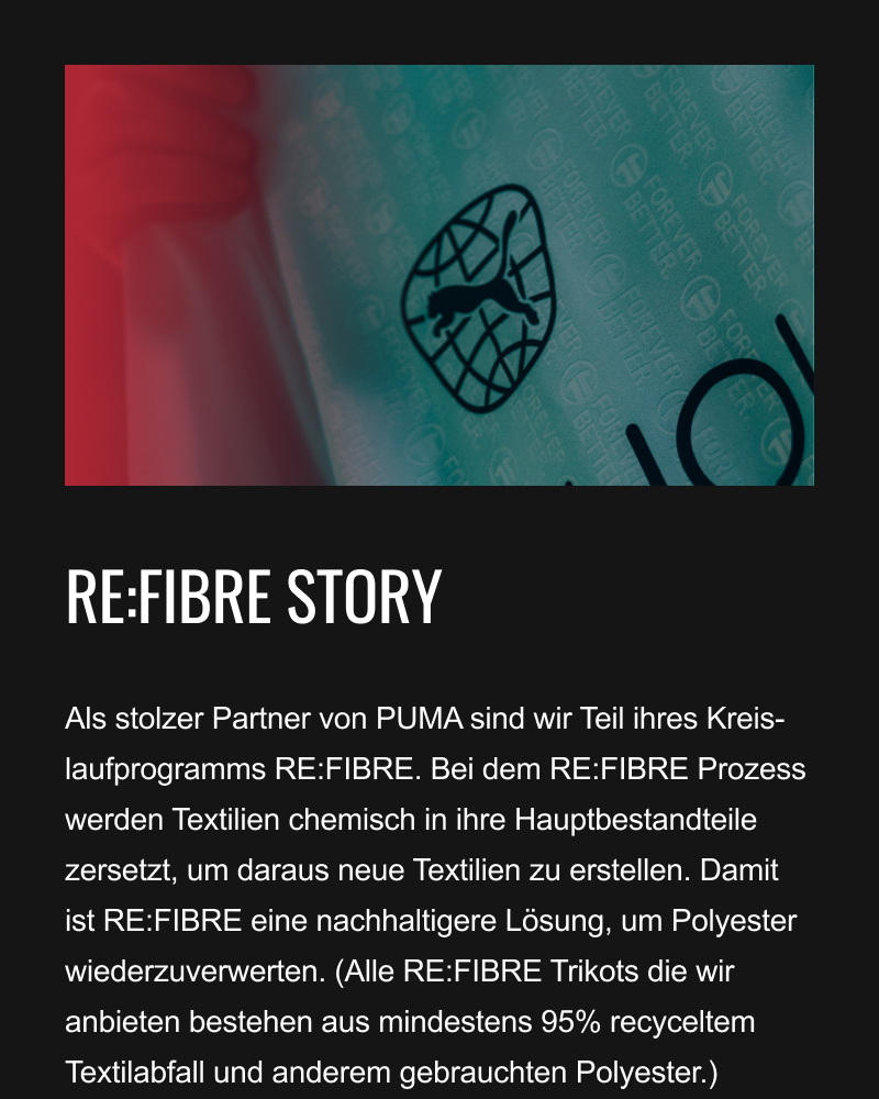 Wir rüsten tausende Fußballteams in Europa aus und versuchen dabei so nachhaltig wie möglich zu agieren. Du hast bei 11teamsports die Möglichkeit dich mit deinem Team für das RE:FIBRE Trikot von PUMA zu entscheiden. Das Trikot wird aus Textilabfällen hergestellt. Wir haben dazu mit der Product Line Managerin Nora von PUMA gesprochen.