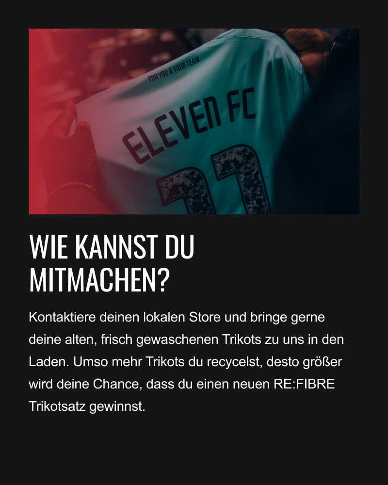 Trag deine Wunschfarbe in das Formular ein und wir veredeln dein RE:FIBRE Trikot für dich und dein Team.