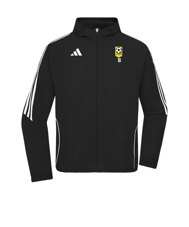 Ton équipe et toi êtes parfaitement habillés avec la veste anti-transpirante Tiro en noir. La veste adidas a rencontré un franc succès. Le mauvais temps ne sera plus un mauvais prétexte avec la capuche. Nous recommandons cette veste Tiro légère, respirante, confortable et anti-transpirante avec son agréable confort de port. La veste vous offre une protection optimale et une durée de vie importante. Des poches frontales à fermetures éclair créent un espace de rangement supplémentaire pour divers petits objets.
