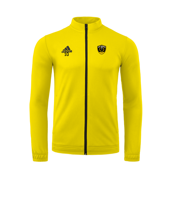 Avec la veste de survêtement confortable Entrada en jaune, toute ton équipe peut parfaitement manifester sa solidarité. La veste de survêtement adidas est le choix parfait. Nous recommandons cette veste de survêtement Entrada anti-transpirante, confortable, respirante, légère et élastique avec son agréable confort de port. La veste de survêtement vous offre une durée de vie importante. Que ce soit lors de la phase d’échauffement décisive avant le jeu ou pendant l’entraînement, vous êtes bien préparés. Des poches frontales créent un espace de rangement supplémentaire pour divers petits objets. Une fermeture éclair facilite une fermeture confortable et simple de la veste de survêtement. Avec un col montant à la mode cette veste de survêtement à manches longues est irrésistible.